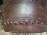 Of traditional rivetted seam construction , originally conceived as washing or industrial vessels.