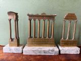 Set of 3 bronze desk-top reductions of the ruins of the Temples of Saturn , Castor & Pollux and Vespasian as situated in the Roman Forum , Campo Vaccino, Rome , Italy .