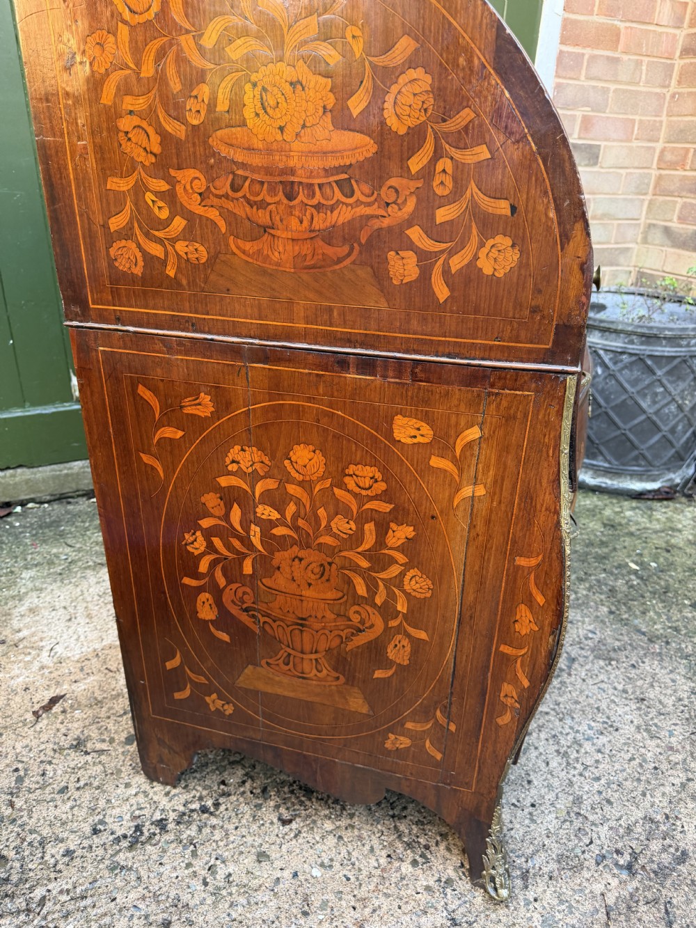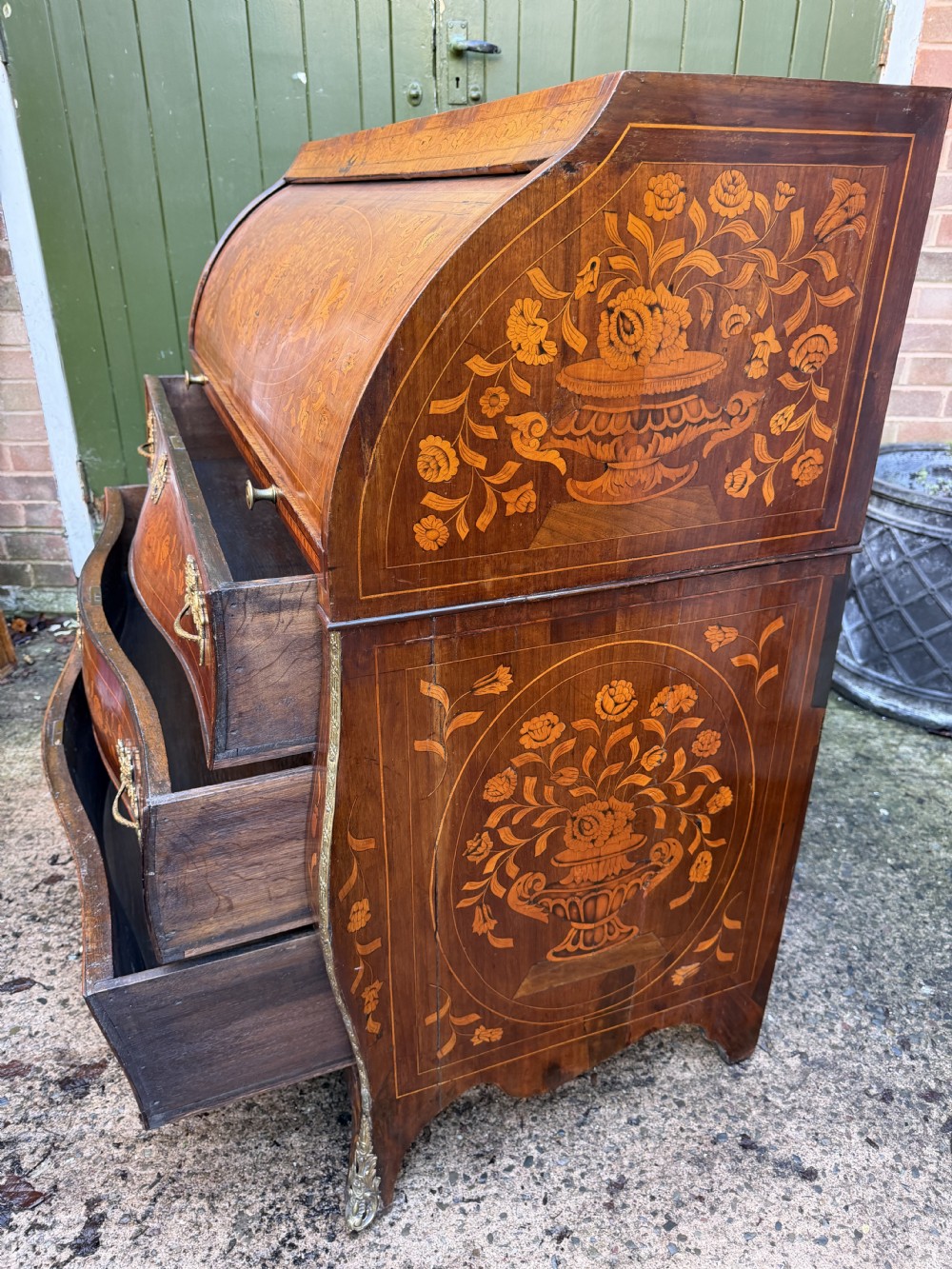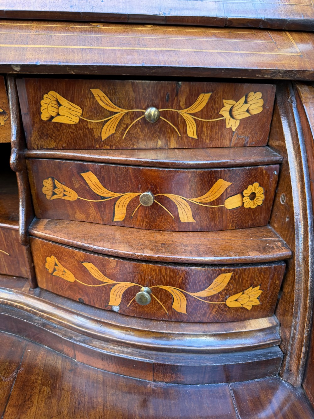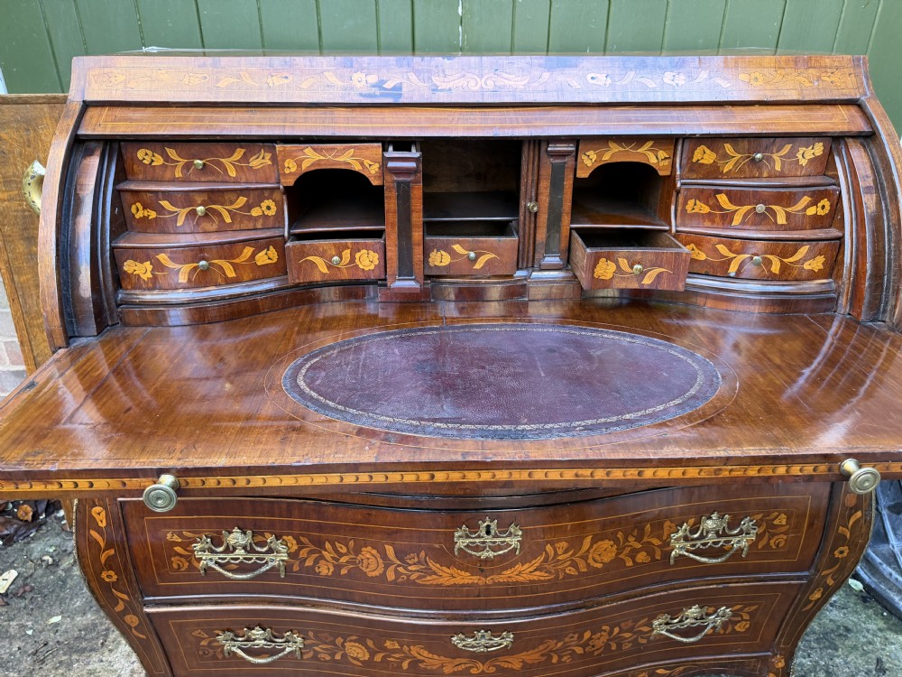 Late C18th Dutch floral marquetry inlaid walnut cylinder bureau .