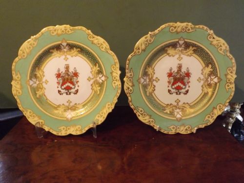 Pair early C20th Royal Cauldon porcelain armorial cabinet plates