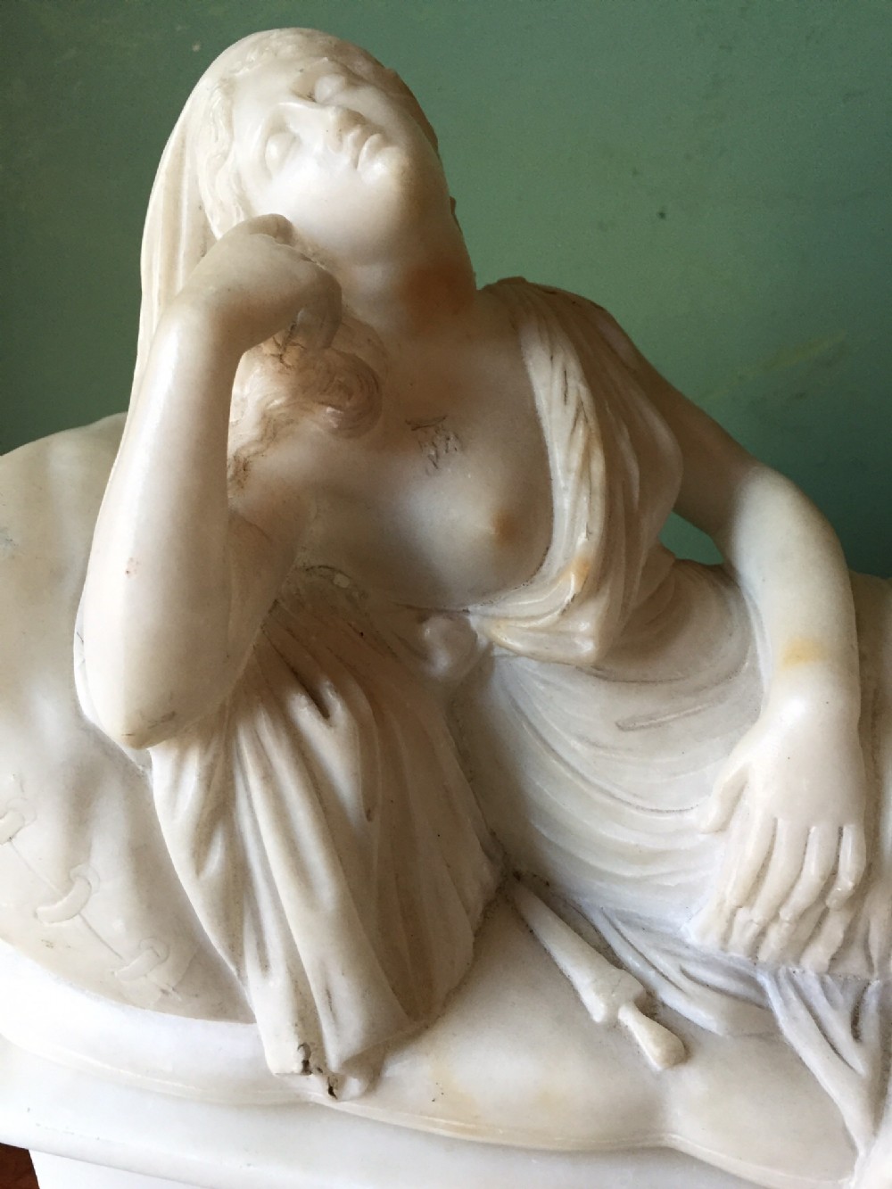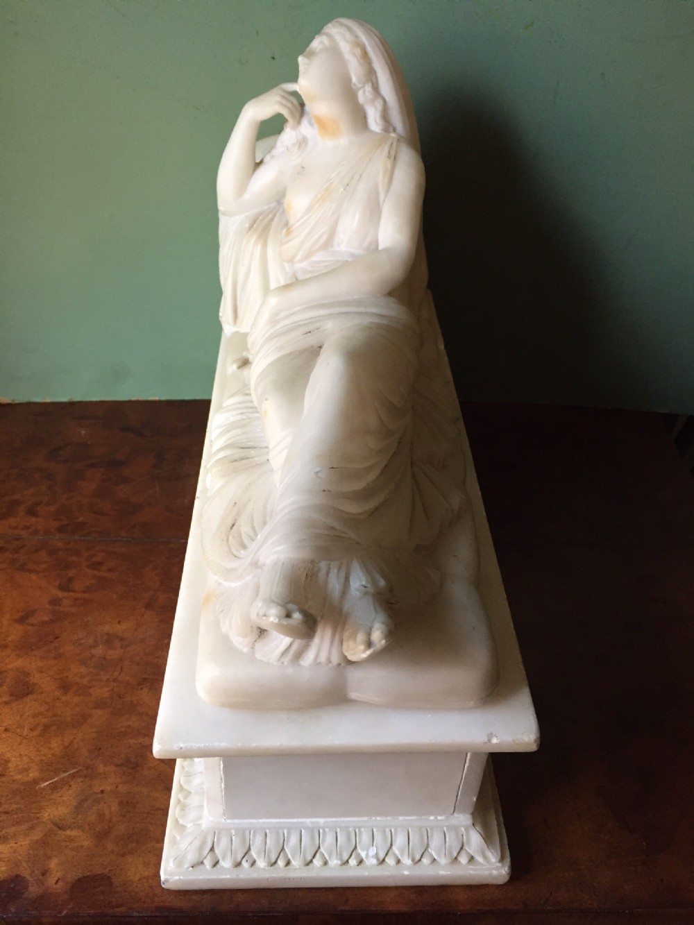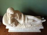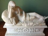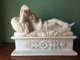 Fine C19th carved alabaster sculpture study after the antique of Lucretia , modelled as a sleeping Ariadne .