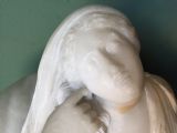 In excellent condition and of good colour with a good , aged , smooth surface. Fine carved detail to the folds of cloth on the figure and well-modelled feet ,hands and face. The sculpted figure mounted upon pins to the plinth and is detachable. Crisply-carved architectural element details to the plinth base ,with classical flower-head and leaf carving to central frieze .