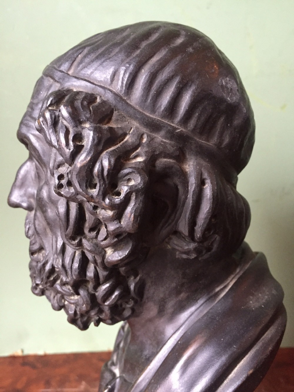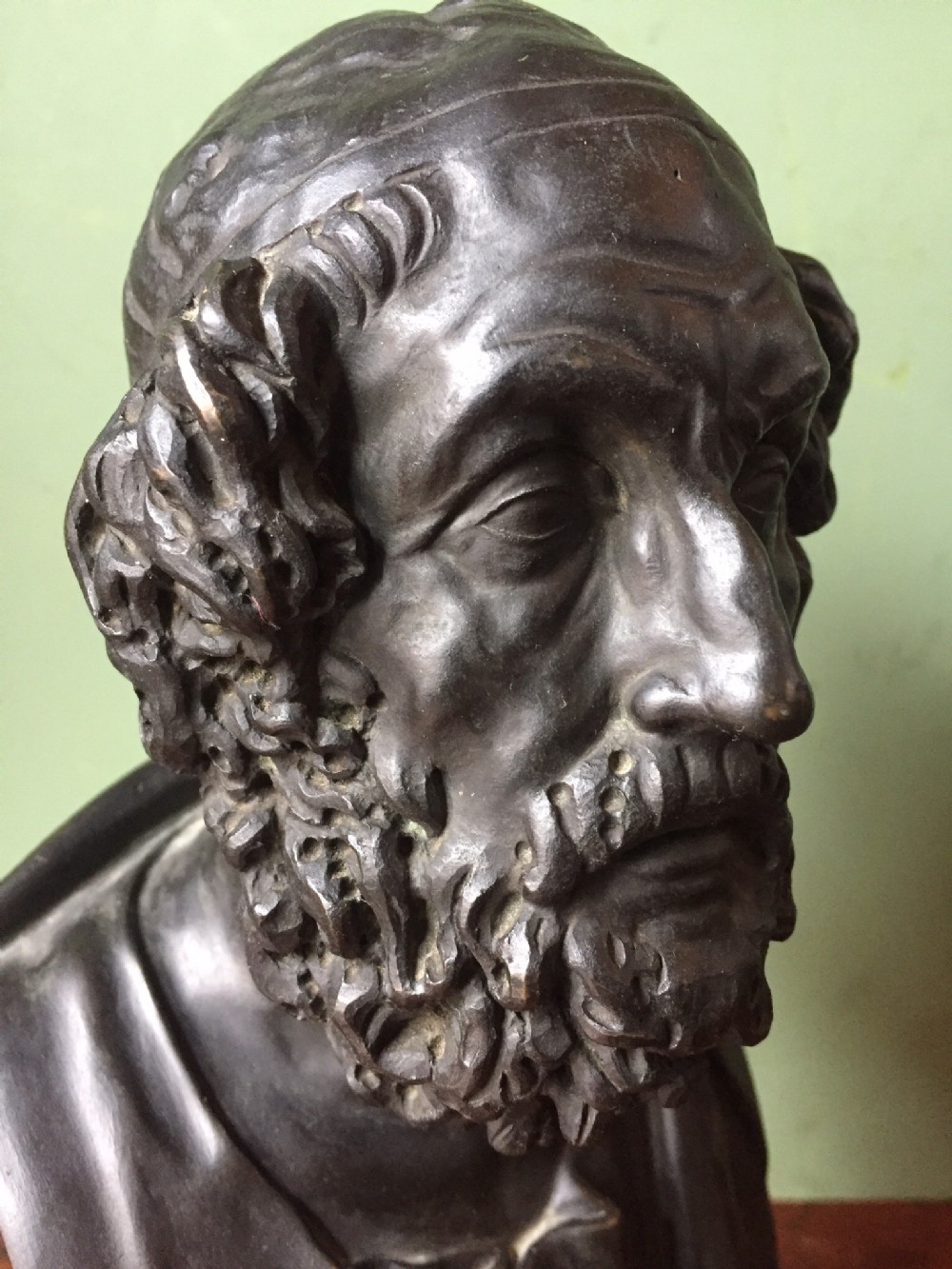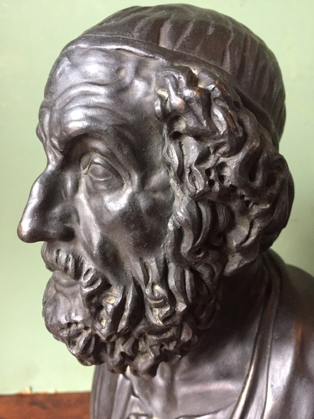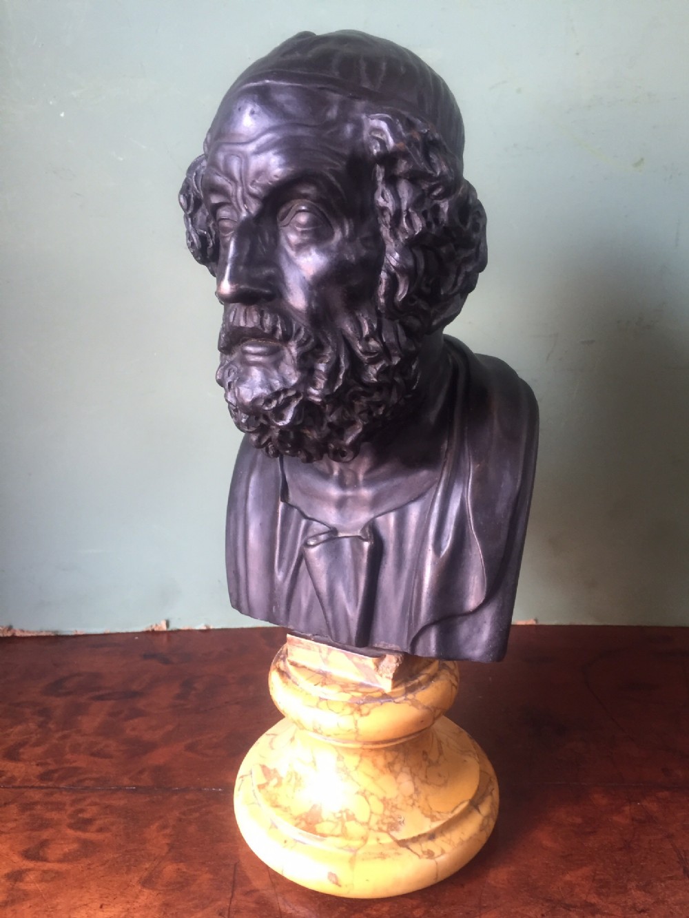 Early C20th Italian 'Grand Tour' souvenir bronze bust study of Homer after the antique.