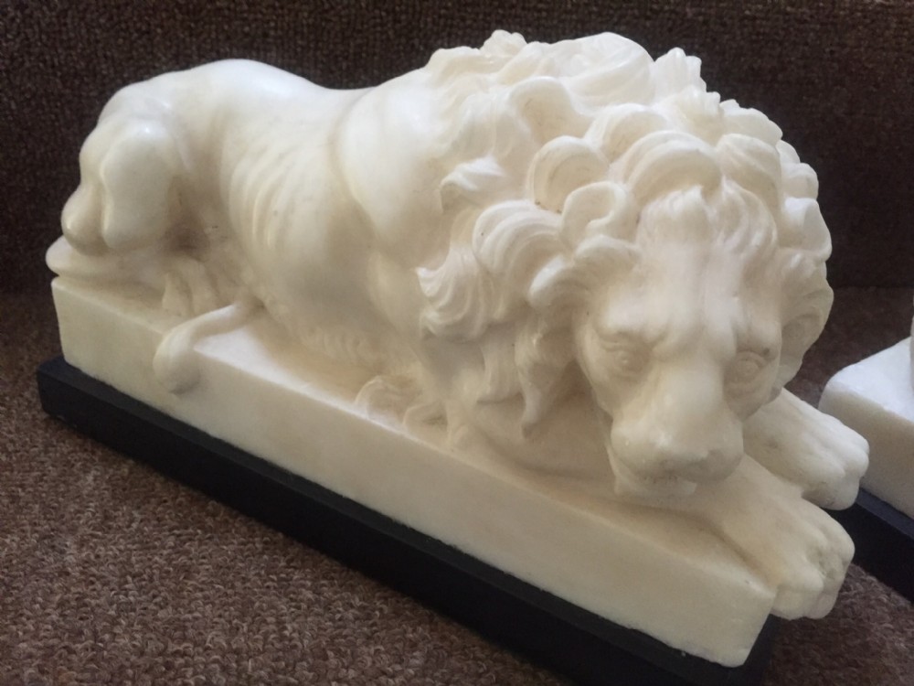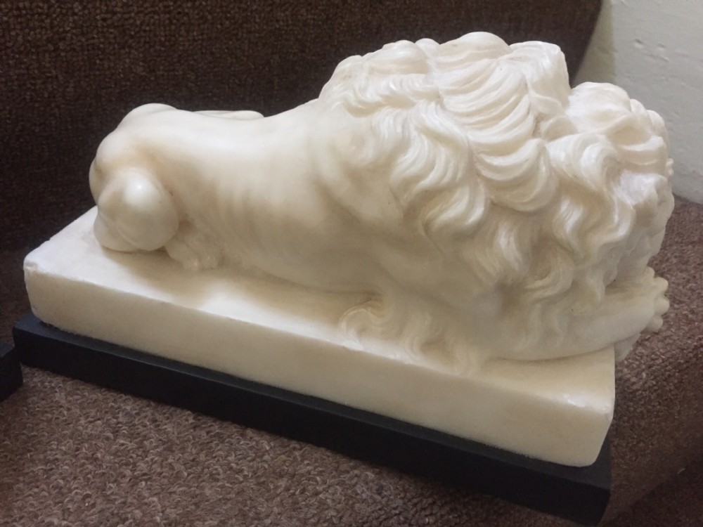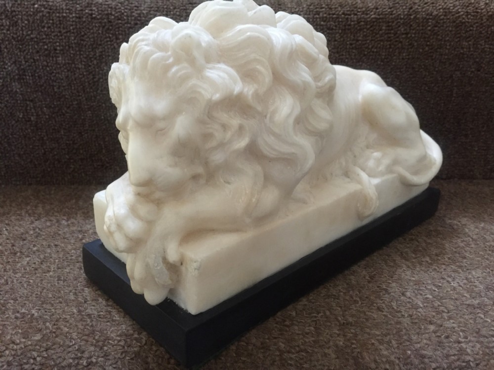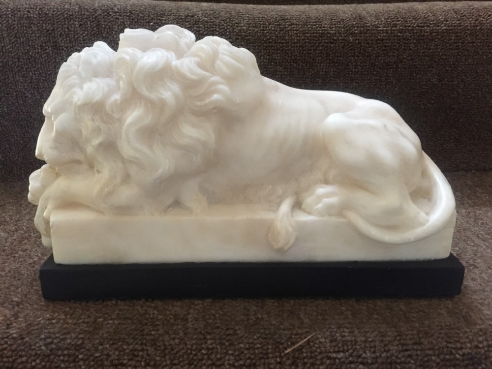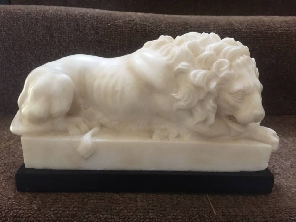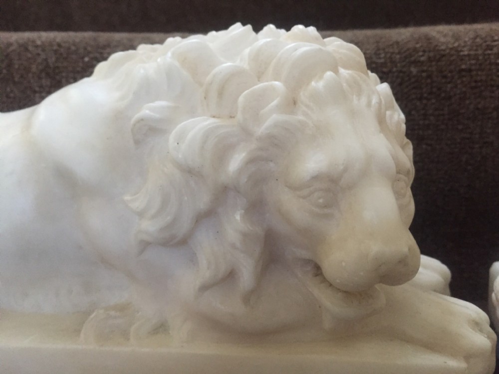 The original lions were carved by Canova from travertine marble , whilst copies were carved in the workshops of Rome from various marbles and stones for sale to 'Grand Tourists' ,as souvenirs from their classical tour and visit to the Eternal City.