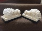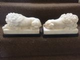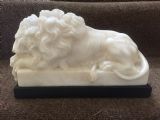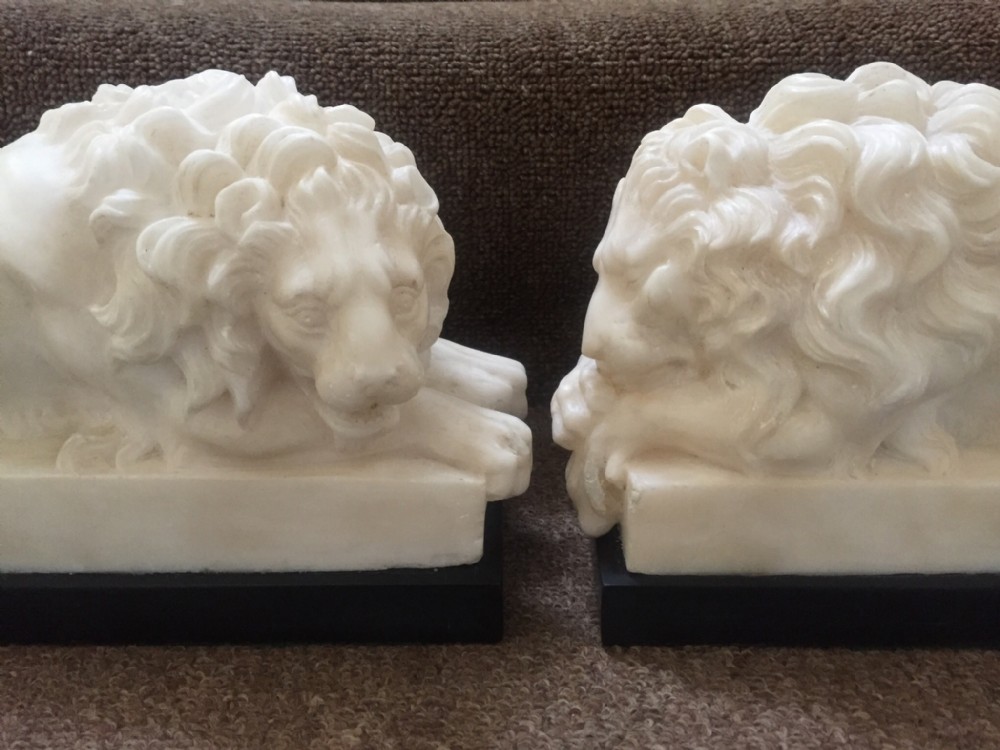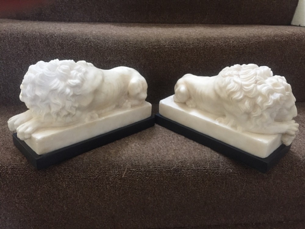 Fine pair of C19th Italian 'Grand Tour' souvenir carved alabaster lions after Antonio Canova.