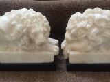 Skilfully carved in alabaster with excellent true detail , the pair are mounted on Belgo Nero black marble bases. Great detail to mane ,face and bodies ,in accurate representation of the originals .The alabaster bodies have the appearance and colour of the the prized Carrara marble as used by the leading Renaissance and neo-classical sculptors.