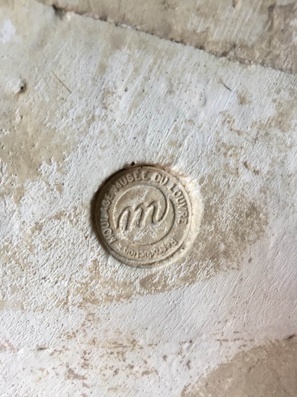 Life-size plaster copy of the marble original now housed in the Louvre Museum , Paris , France. A cast produced by the 'Musee Du Louvre' , and bears their impressed stamp to rear .