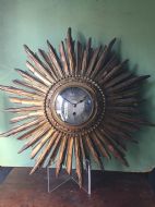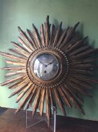Early C20th French giltwood "sunburst" clock with silvered dial .