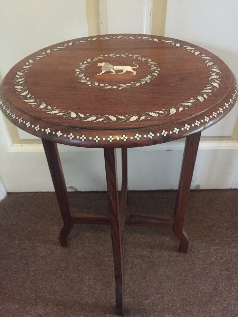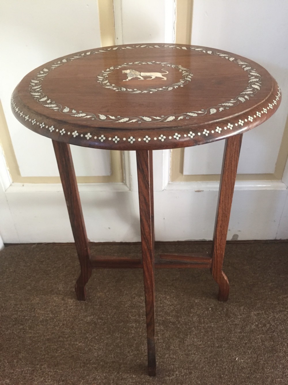 Early C20th Indian ivory inlaid rosewood occasional tale.