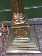 Imposing late C19th/ early C20th Edwardian period brass Corinthian capped fluted column telescopic height standard lamp .