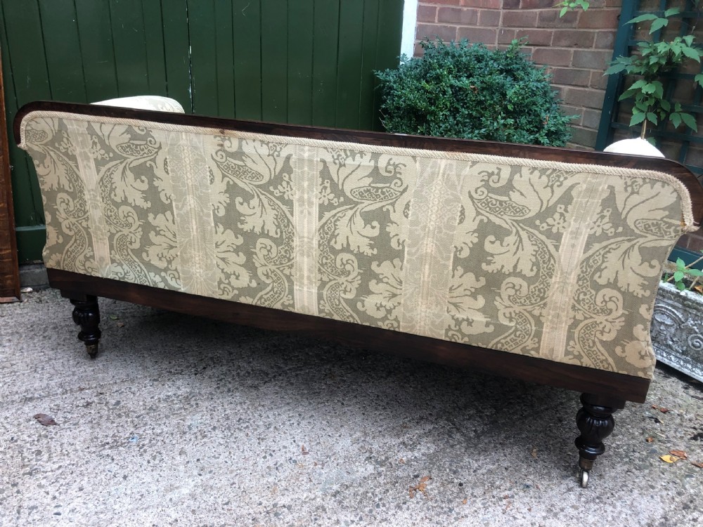 Early C19th William IV period carved rosewood framed sofa of practical scale and proportions.